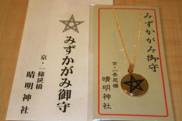 晴明神社的水鏡御守,是項鍊型的,可以戴在脖子上。