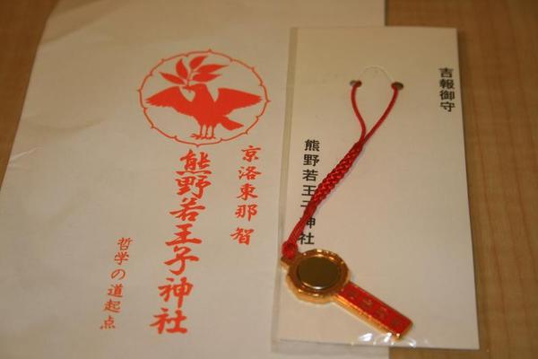 然後是熊野若王子神社的吉報御守,好像反光的話會反射出字,但我還沒打開,不確定(至少說明這麼寫)。