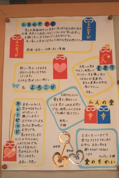 。底下選幾個比較有名跟我覺得比較特殊的,拿出來做介紹一下。最有名的當然是地主神社跟戀愛有關的御守:
