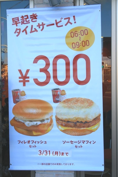 日本的麥當勞早餐,供應時間比臺灣早一點,也比臺灣貴一點。不過換算兩國國民所得差後,這應該算便宜了吧?比較特別的是,還可以搭配麥香魚耶!
