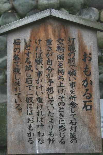 然後這是個有趣的石頭,根據旁邊的說明,大概是說,先想想自己想做的事情,然後去抱那塊石頭,如果抱的時候比想像中輕,就代表事情會比較順利(相反的話......各位應該知道結果。不過我那時想的事情,抱起石頭來比我想像中輕,不過怎麼好像沒有很順利......)。