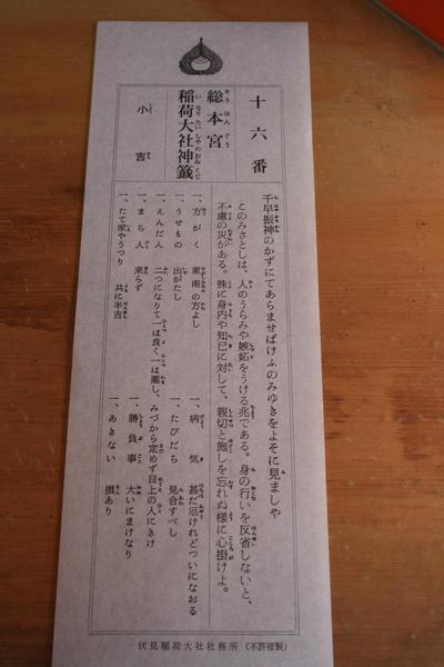 不過伏見稻荷大社除了狐狸有名外,最有名的就是千本鳥居,這次因為沒有太多時間(聽說全程走完整座山要兩三小時),加上我的腳再抗議,所以我只走到中途的奧社參拜所而已(順便帶了御守回來