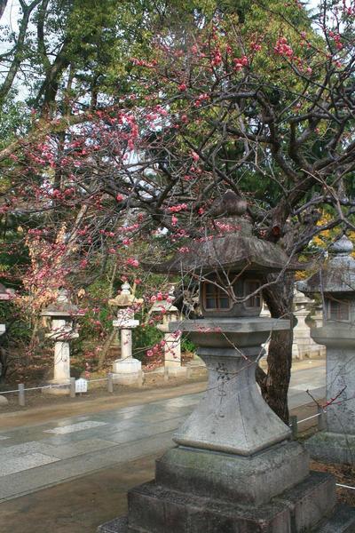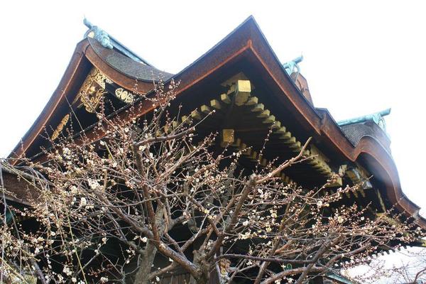 然後就在這邊晃一下,其實不用去「梅苑」(在北野天滿宮外),內部就有不少已經開的梅花了。