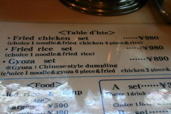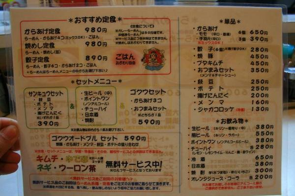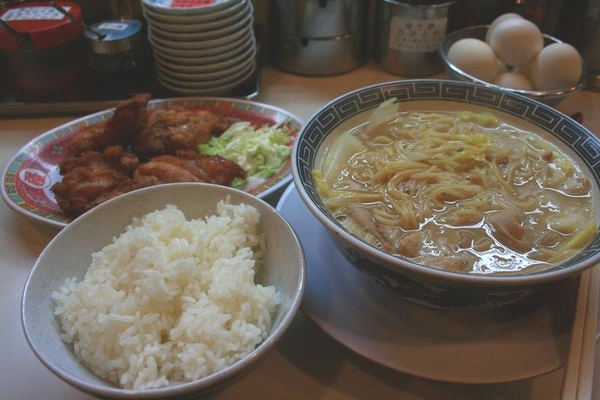 我點的套餐是悟淨拉麵,本來套餐應該只要980圓,不過由於悟淨拉麵是味增拉麵,要加50圓,所以就便1030圓,日本行最貴的一餐。不過我覺得很划得來,為甚麼?請看下面的圖片。套餐包括大碗的味增拉麵、四塊炸雞以及一碗白飯,其中白飯可以無限吃......