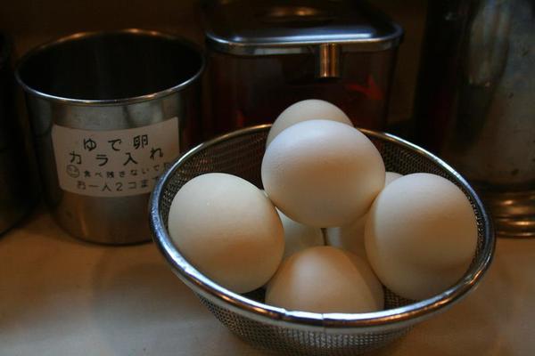 然後在座位前面有放一碗水煮蛋,一人好像最多可以吃兩顆。不過我沒吃......因為我點的晚餐太多了。