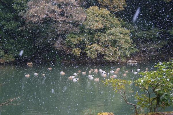 之後離開庭園後,再往上走一些。這時候老天又在開玩笑了,又下雪了.......,而且這次的雪有大到。