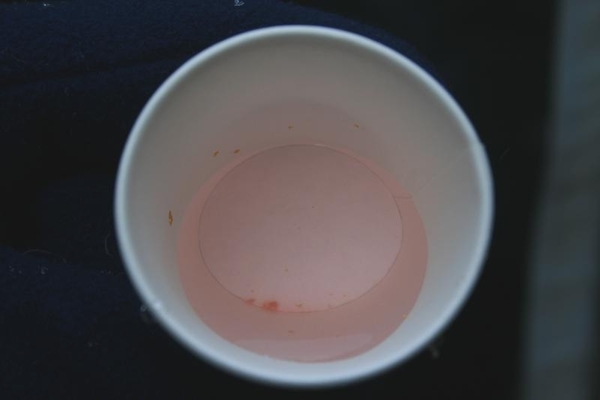 在這邊大概走了將近一個多小時,下雪感覺很冷,走到出口處時,剛好看到有個開放試飲茶的攤位,就過去要了一杯。要來之後發現不得了,是有金箔的梅茶唷!