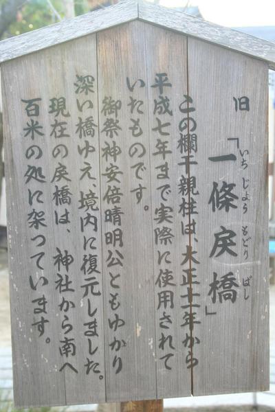 然後在神社裡,也有剛剛的一条戾橋的縮小板,加上一個木板的告示。